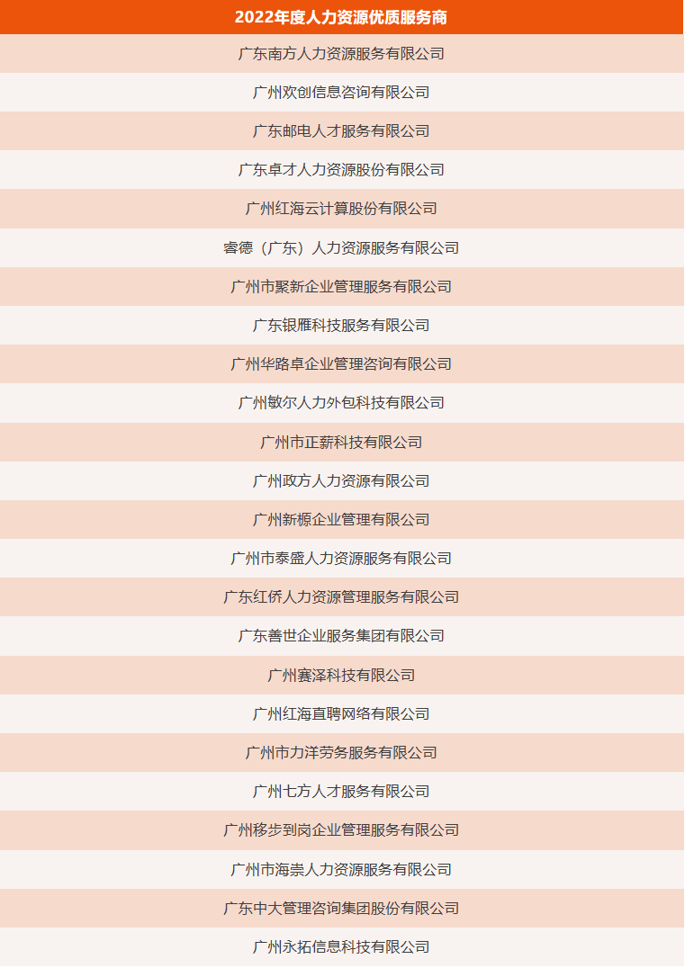 2022年度人力资源服务品牌机构、人力资源优质服务商、优秀会员单位及人力资源服务先锋人物名单